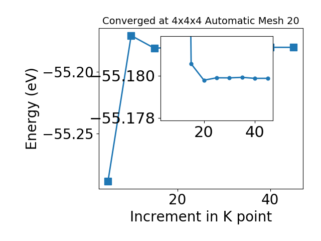 Calculations are done using VASP software [Source-code]. Convergence on KPOINTS [Source-code] and ENCUT [Source-code] is done with respect to total energy of the system within 0.001 eV tolerance. Please note convergence on KPOINTS and ENCUT is generally done for target properties, but here we assume energy-convergence with 0.001 eV should be sufficient for other properties also. The points on the curves are obtained with single-point calculation (number of ionic steps, NSW=1 ). However, for very accurate calculations, NSW>1 might be needed.