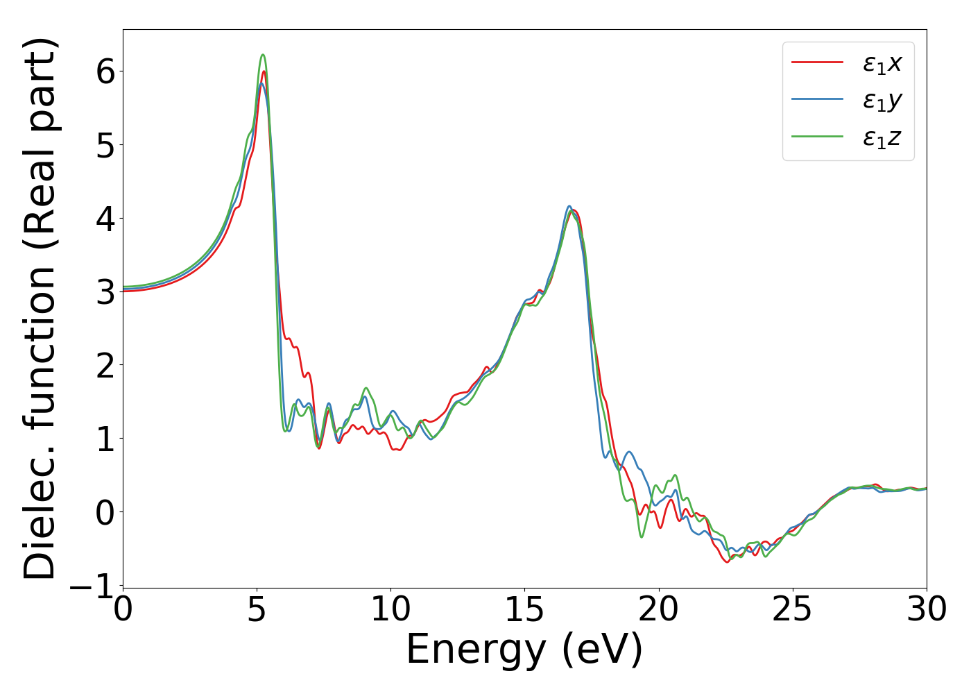 Static real-parts of dielectric function in x,y,z: 3.0,3.03,3.06
