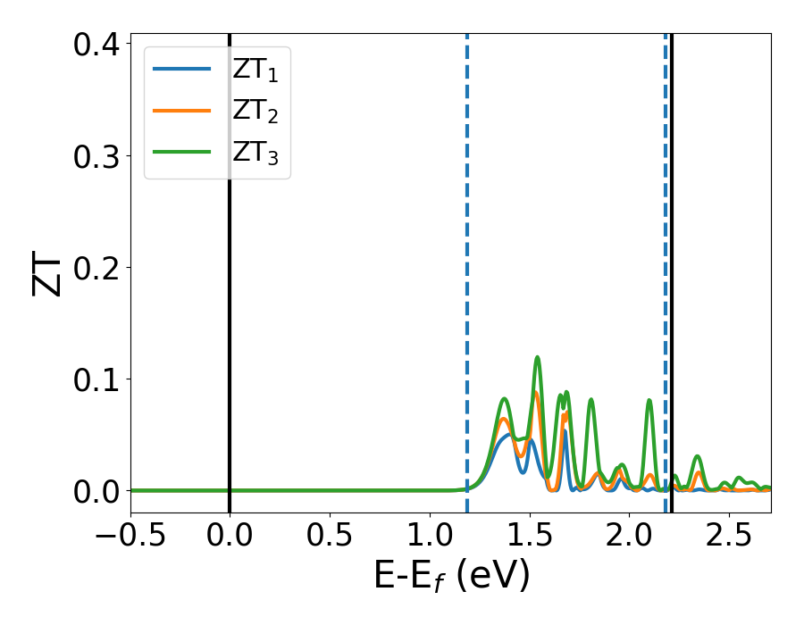 WARNING: Constant relaxation time approximation (10-14 s) and only electronic contribution to thermal conductivity were utilized for calculating ZT.