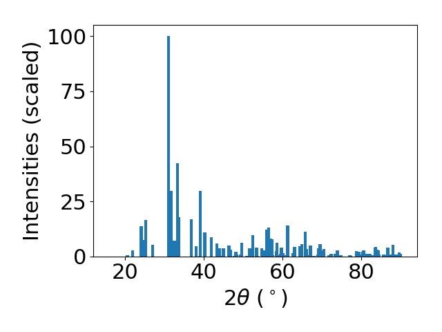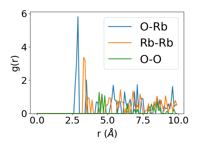 The following shows the X-ray diffraction (XRD)[Source-code] pattern and the Radial distribution function (RDF) plots [Source-code]. XRD peaks should be comparable to experiments for bulk structures. Relative intensities may differ. For mono- and multi-layer structures , we take the z-dimension during DFT calculation for XRD calculations, which may differ from the experimental set-up.